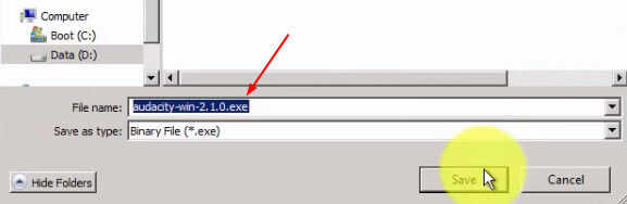 Usted puede ahorrar Audacity ejecutable (.exe) en el escritorio o en una carpeta