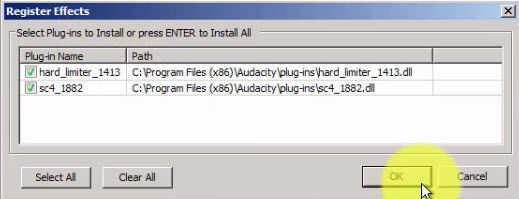 Haga clic en Aceptar para instalar plug-ins de adición necesitadas Audacity