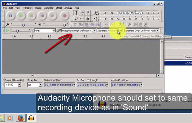 Compruebe que la entrada al lado del icono de micrófono por defecto dispositivo de grabación de sonido
