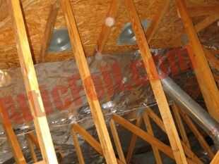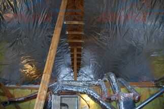 Después de completar su primera carrera, volver a la parte inicial y fije el segundo plazo, lo superposición de un o dos pulgadas con el primero. * No es necesario en la cinta la costuras/superposición - sólo colocar uno sobre el otro y lo de la grapa. Continuar así hasta que esté sobre 3-6" desde la cima del techo luego se detiene. Quiere dejar una pequeña área en el pico destapado para permitir ventilación adecuada. Esto es cierto independientemente del tipo de ventilación que tienes! Lea más sobre dejar huecos en la instalación de lámina barrera radiante para la ventilación del ático adecuado.