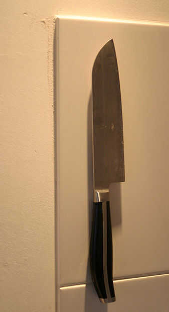 Cuando el pegamento esté seco, meter el cuchillo a los imanes y asegúrese de que tiene (como se puede ver, tocó la cola y tiene algunas en el cuchillo...)