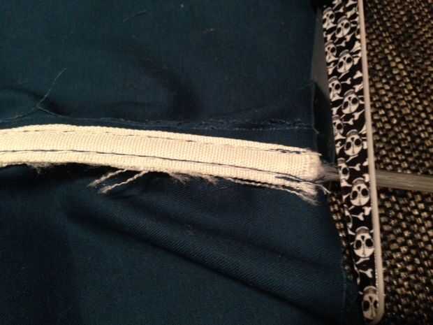 Super importante! No corte el deshuesado de la parte inferior de la carcasa! Usted todavía necesita coser la parte inferior de la carcasa (y posiblemente coser una falda en la parte inferior de la blusa) hasta cortar el deshuesado de 3/8" a 1/2" más corto que la carcasa.