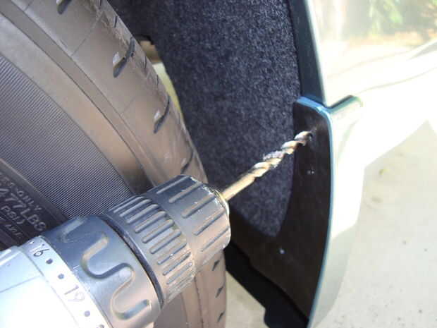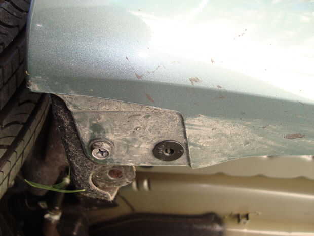 ya que yo estaba teniendo un momento difícil por el neumático trasero que estaba en la manera de mi taladro de perforación, decidí sacar el perno en el extremo inferior de los parachoques.