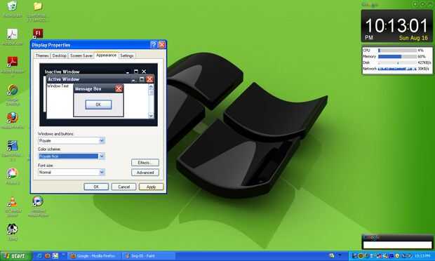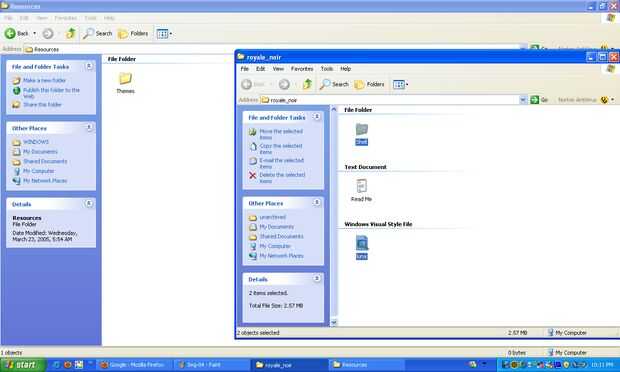 Forma de esa carpeta, haga clic en el icono del tema "Luna". Esto abrirá las propiedades de pantalla > apariencia. En el menú desplegable, seleccione Royale Noir, haga clic en aplicar, luego aceptar. Ahora siéntese y disfrute su nuevo escritorio.