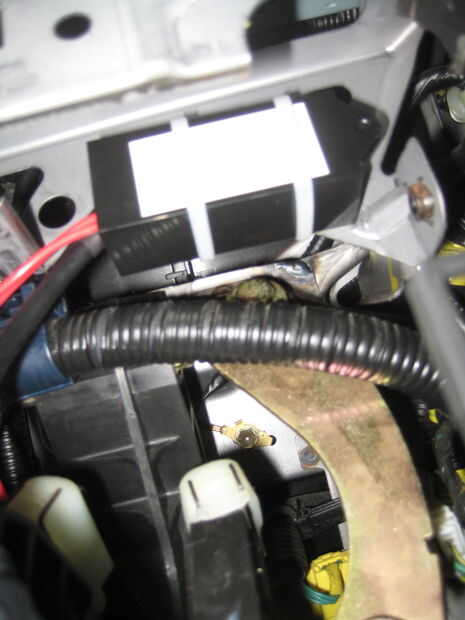 A continuación tomar tus ataduras de cremallera y correa de la caja al chasis de la radio y asegúrese de que no sea en nada cuando se pone la consola en el lugar. Tenga en cuenta. Esto es donde tenía el cuadro atado en. estar por encima de la transmisión. Usted puede ver inmediatamente cuando te quitas la bota de cambio.