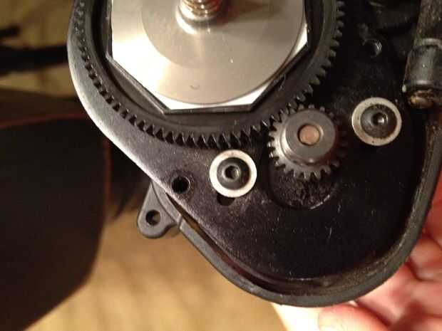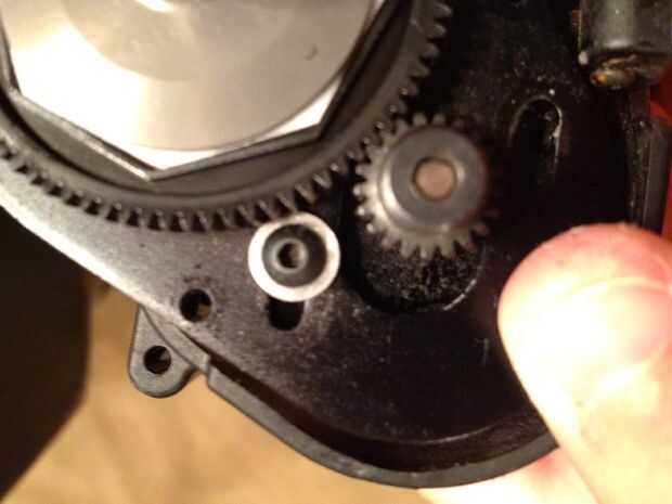 8. ahora añadir el segundo tornillo y asegurándose de que el piñón no toca totalmente la espuela.