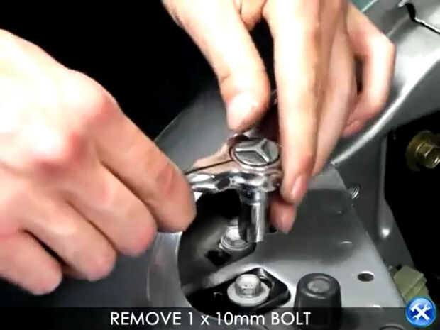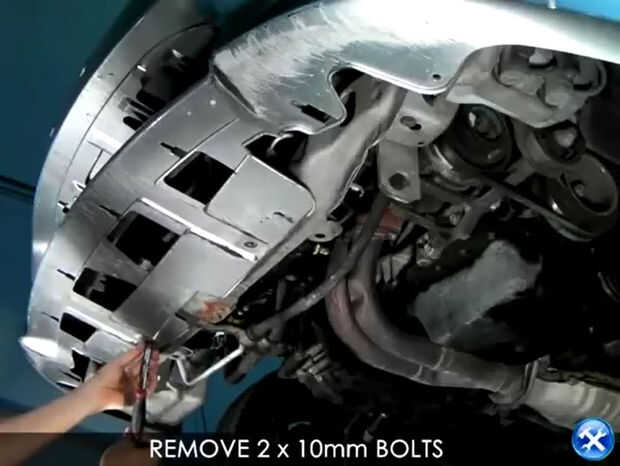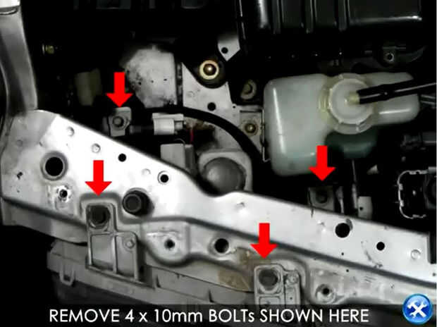 1. Retire los dos pernos de 10mm por debajo del parachoques delantero.