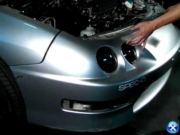 3. Retire la luz parachoques quitando los tornillos. Una vez que se ha quitado los tornillos Retire los conectores y arneses de la luz. Asegúrese de repetir en el lado del conductor y pasajero.