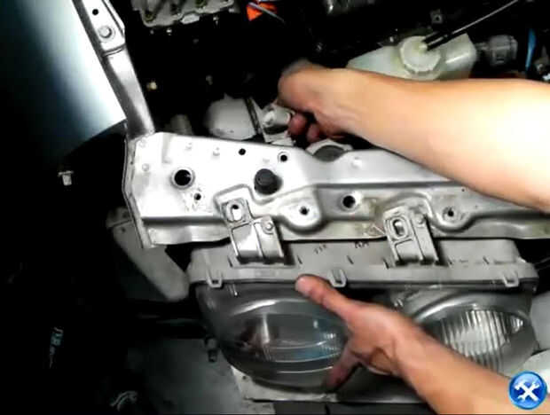 7. cada faro es presionada mediante 4 tornillos de 10mm. Retírelas del lado del pasajero y conductor.
