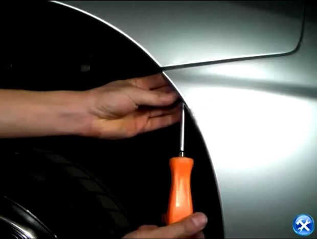 2. Retire el tornillo conectar el guardabarros con el parachoques delantero.