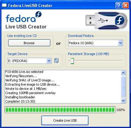4. crear el Live USB - haga clic en él y verlo hacer su magia. Cuando se hace, lo hará parecer la imagen se muestra a continuación.