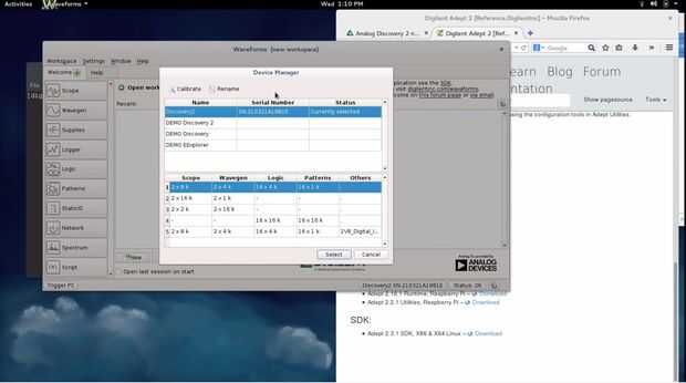 Si abres el Administrador de dispositivos, o si tienen los 2 de descubrimiento análogo conectado cuando formas de onda se abre, aparecerá esta ventana. Selecciona los 2 de descubrimiento análogo al igual que para el modo demo.