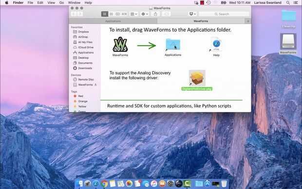 Formas de onda de 2015 es una pieza de software desarrollado por Digilent diseñado para uso con el Analog Discovery 2, Descubrimiento análogo, EE Juntao Analog Discovery 2 NI edición.Proporciona la interfaz de usuario para un osciloscopio de canal 2,
