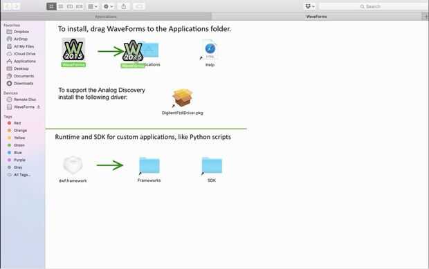 Formas de onda de 2015 es una pieza de software desarrollado por Digilent diseñado para uso con el Analog Discovery 2, Descubrimiento análogo, EE Juntao Analog Discovery 2 NI edición.Proporciona la interfaz de usuario para un osciloscopio de canal 2,