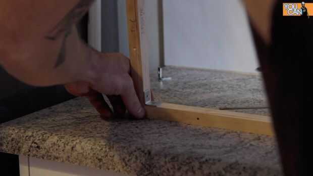 Medir la longitud y la profundidad de los gabinetes y hacer el marco en forma de u para estas mediciones. Utilicé material cuadrado de 18mm, pero también se podría utilizar algo más decorativos como molduras. Cortar las esquinas en 45 grados en la Sierra de inglete y se unió a ellos mediante abrazaderas de acero de la esquina.