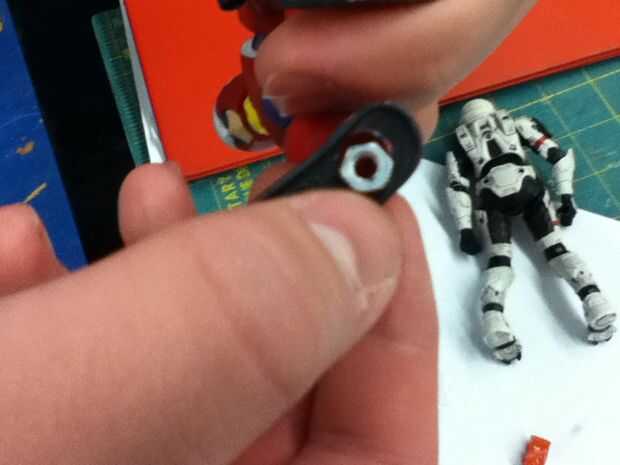 Cómo instalar imanes de tierras raras en los pies de figuras de acción (3 / 5 paso)