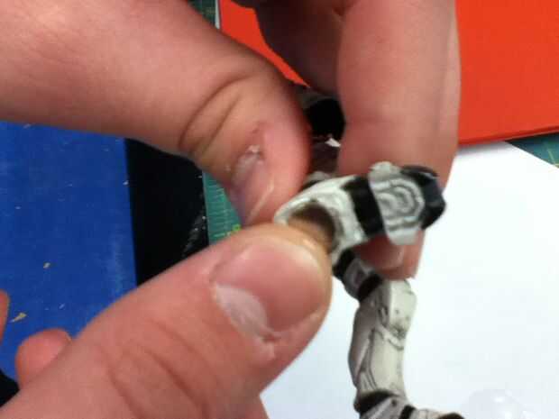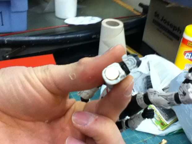 Cómo instalar imanes de tierras raras en los pies de figuras de acción (4 / 5 paso)