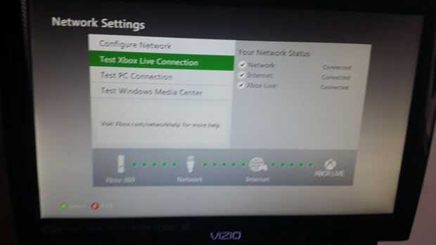 Después de hacer clic en la conexión con cable o inalámbrico, haga clic en "Probar XBOX Live conexión." La conexión se indicarán por puntos verdes; una vez que se conectan todos los puntos verdes su consola está conectada a los servicios de Xbox Live.