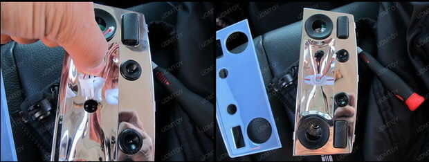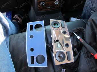 4.) gancho agarrador su LED luces (en este caso, hemos utilizado un panel de LED con un adaptador de lámpara T10) e instalar desde el frente. La cabeza de la bombilla LED probablemente será demasiado grande por lo que no cabe de la parte posterior; Instalalo desde el frente. Repita el mismo procedimiento en las luces exteriores de la Asamblea.