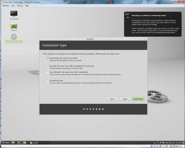 - Y seleccione Borrar disco e instalar Linux Mint.