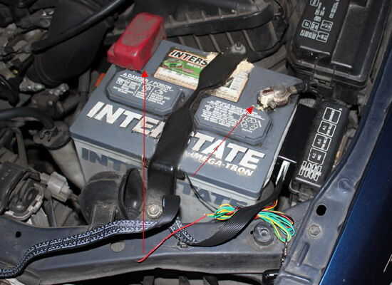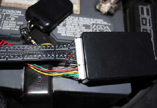 6) conectar sólo los cables rojo y negro a la batería positiva y negativa y deja otros tres hilos ausentes