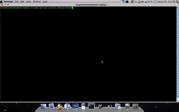 Este tipo de Terminal: sudo apt-get instalar msttcorefonts