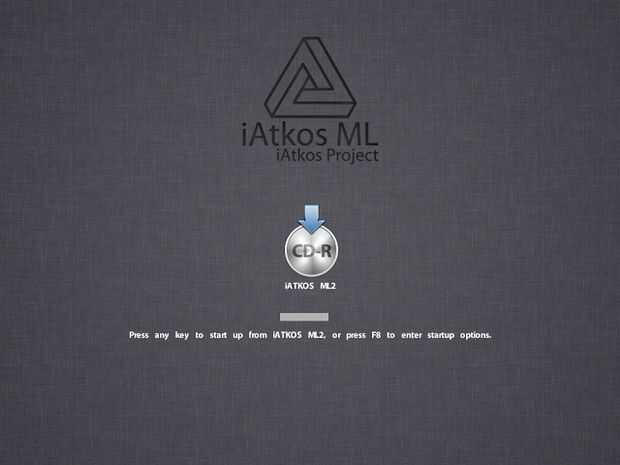 -En el menú de iAtkos, seleccione el nombre de tu unidad USB de iAtkos/DVD, mediante el uso de la izquierda/derecha flechas en tu teclado y luego presione la tecla enter o tecla de retorno para arrancar al instalador de OS X Mountain Lion (este paso se muestra en la segunda foto).