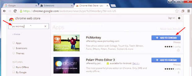 Después de PicMoneky encontradas, haga clic en el botón añadir a Chrome junto a PicMonkey