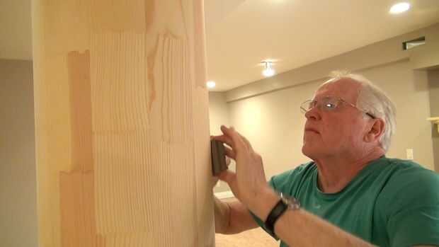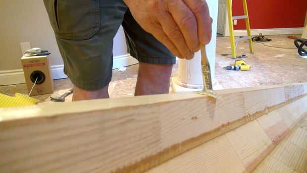 Había pintado pegamento de madera de buena calidad por las costuras de los dos lados luego les pegan y les sujeta. Esto dejó el pegamento como atornillan los dos juntos. Seguido esto rellenando los huecos con barro y lijado. Montón de lijar para conseguir ese acabado liso perfecto. El pino fue empalme del dedo, así que sabíamos que no manchaba así que era mucho más perdonable. Añadir una capa de pintura (o dos) y estábamos acabados! Y qué diferencia visualmente! Fue muy bien con la pared redondeada. Ver el video para más detalles.