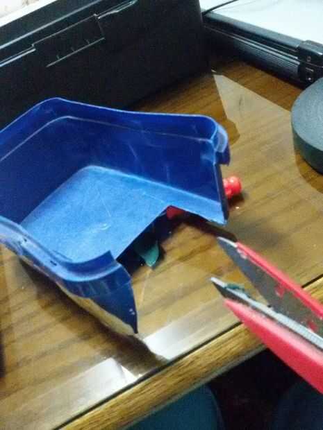 Con las tijeras corta la parte ángulo recto en el cuadro como vas por disminución del espacio de corte para hacer más pequeña en tamaño que el servo y el ultrasónico.