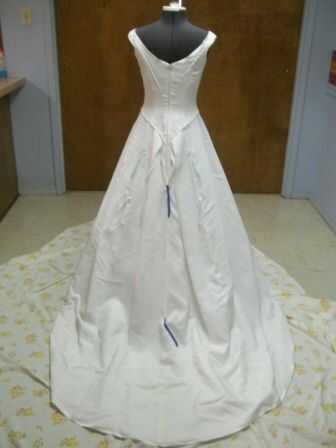 Comenzar en un área de trabajo. Extender una sábana vieja o una manta en el piso para proteger el vestido. Lugar el dressform en el centro de la manta. (Si es posible, ajuste la configuración de medida de la dressform cerca de 2 pulgadas más pequeñas que las medidas del vestido. Usted no quiere estirar la tela). Si usted tiene una enagua de la crinolina, pelusa de la secadora, luego ponerlo en el dressform. Poner el vestido de adentro hacia fuera en la forma del vestido sobre la crinolina. (Si el vestido tiene mucho de abalorios, poner una hoja sobre el dressform antes de ponerse el vestido de él, para proteger el corte).