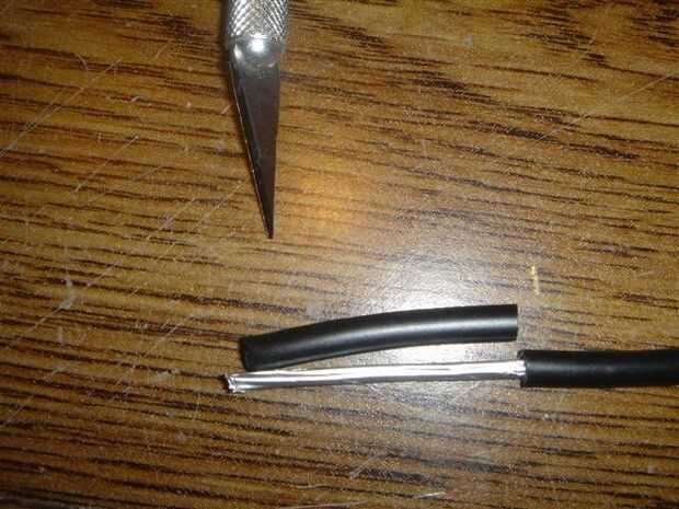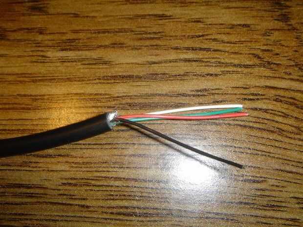 Tira de 3-4 cm de aislamiento en el extremo del cable para desnudar los alambres. Probablemente habrá algunos cable blindaje adicional; en el cable de extensión que se muestra a continuación, hay un material de aluminio de aluminio que cubre todos los cables, junto con unos hilos de cobre sin aislar. Ajuste de los nuevo cerca del final del aislamiento.