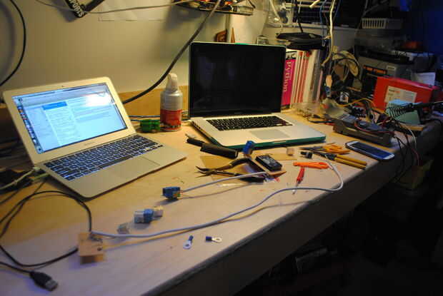 Para el conector USB me compró dos conectores de Jameco y soldado sólo lo negativo y positivo conduce (pines 1 y 4). Si está cobrando un iPad o un iPhone puede que necesite añadir algún voltaje en los pines 2 & 3 (más que más adelante, iPhones requieren un voltaje en las clavijas de datos a cargar.)