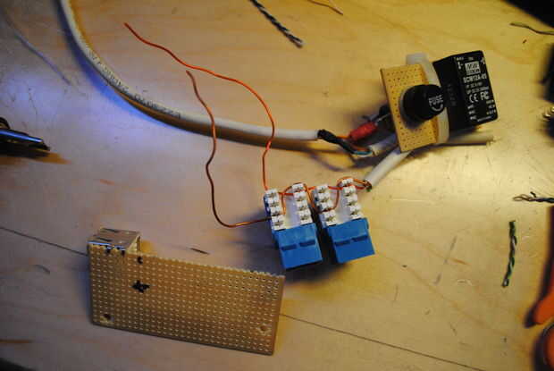 Para los conectores de uso automotriz engarzado conectores estándar para ir a la batería. La parte de atrás de mi circuito suelde todo poniendo mi convertidor DC-DC en un tablero de perf y luego conectar los cables a la parte posterior.