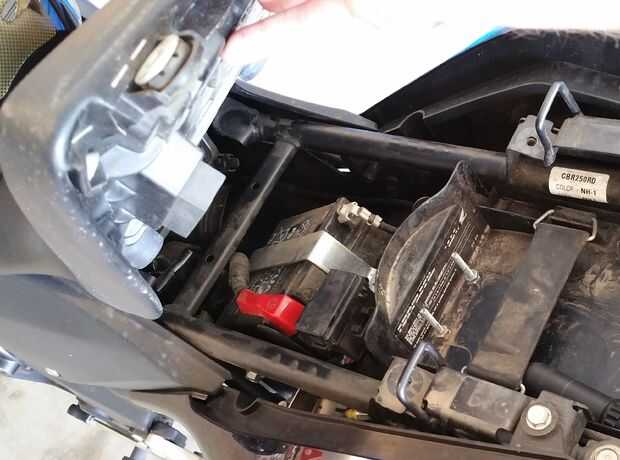 Para hacer la conexión a la batería, tendremos que acceder a la batería. La batería en una Honda CBR250R está situado bajo el asiento.