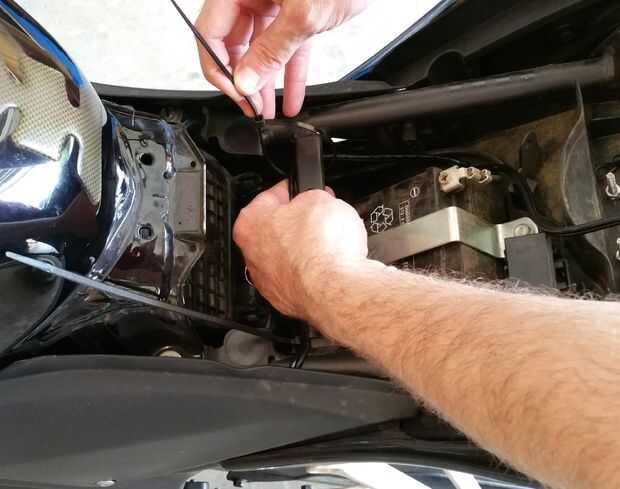 - Quitar el tornillo hexagonal en la parte superior del carenado lateral, cerca del manillar