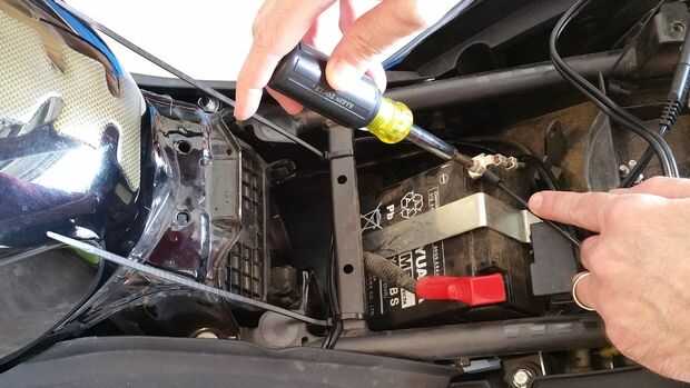 Enruta la conexión entre el cable de extensión y los fusionados con el cable de conexión de la batería al tronco de mi moto. Esto me permitirá fácilmente pop el tronco y conectar una Batería sensible a mi batería si hay alguna razón que no puedo montar por un período prolongado de tiempo.