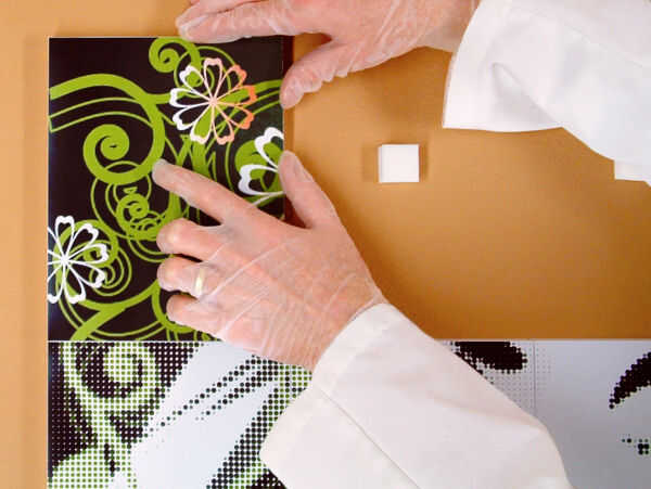 Intercambio de carteles es la manera más fácil de reutilizar los bloques adhesivos. Usted no tiene que quitar los bloques de adhesivo de la pared y puede utilizar el cartel anterior para alinear su nuevo cartel. (FOTO 9 - 1)