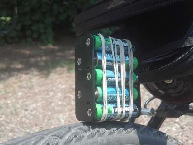 Utiliza un soporte de la batería AA 10. Esto entonces fue puesto en una bolsa debajo del asiento.