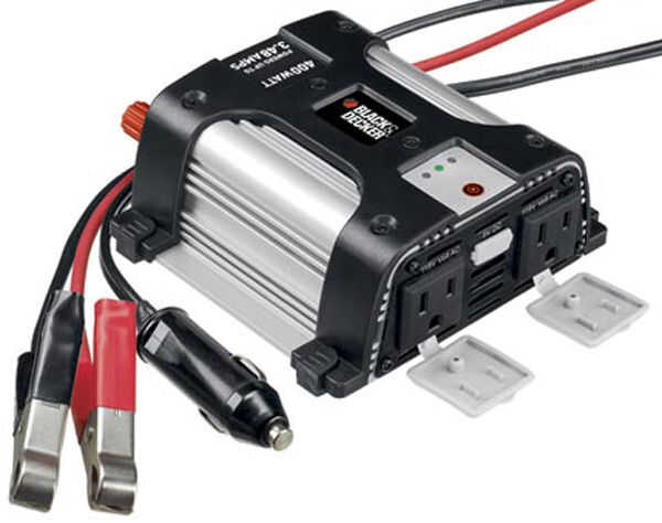 Se necesita un inversor de corriente. Yo tengo la mía como un regalo así que no sé lo que cuesta. por suerte tenía pop out tapones porque no he podido encontrar unos frescos en la tienda de hardware. Tuvo también un usb de 5 voltios enchufe que pensé sería cool usar.