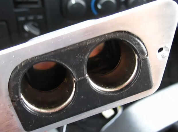 tomé la extensión de 12 voltios que compré y conectados a las líneas de 12 voltios de la batería.  Asegúrese de utilizar un fusible para proteger los cables de pantalones cortos y su coche de coger en el fuego.  He utilizado Bondo como adhesivo para montar los tapones más como un experimento que otra cosa y funcionó muy bien.  Así de rápido secado y es fácil de trabajar.