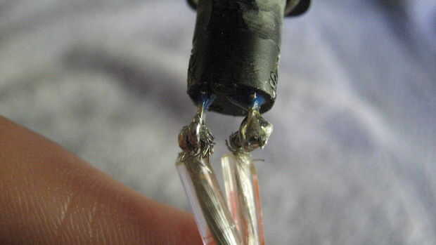 Recomendamos poner cinta aislante alrededor de cada uno de los palos después de soldar los cables a