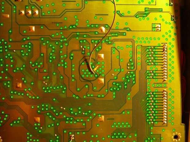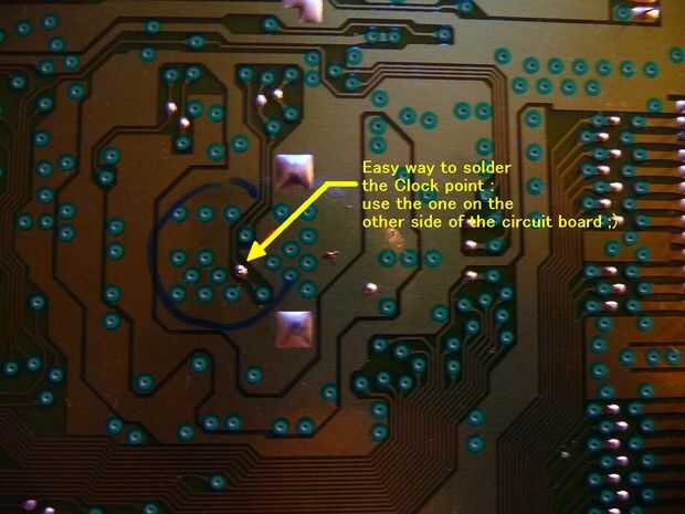 como se puede ver que sería muy difícil soldar algo en este chip, los pines son muy pequeños!! Así que calculo que elctronico, basta con mirar la parte posterior del pcb, y verá una soldadura de punto (véase la segunda y tercera foto) no hay problema para alambre este uno!