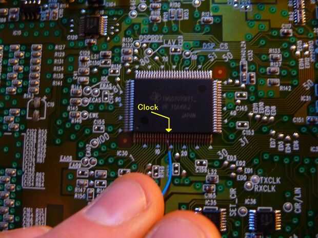 para encontrar el reloj, eche un vistazo en el chip grande en el lado izquierdo de la Junta; el punto es que te muestro en la fotografía;