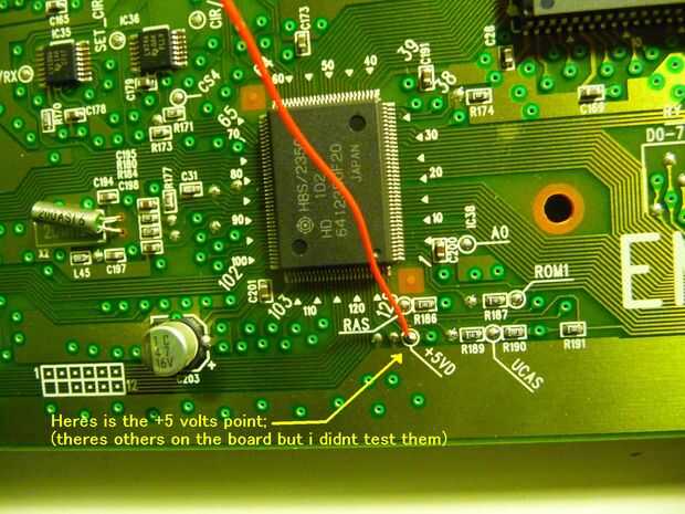 hay algunos + 5v puntos en el circuito, todos ya escribió sobre el pcb, así que no hay problema para encontrar esto ;) es importante encontrar una fuente de energía que energía apagado cuando la máquina está apagado; Korg EM-1 está apagado el voltaje es de demasiado en los + 5v punto elijo en la fotografía.