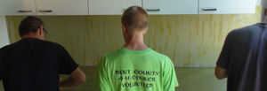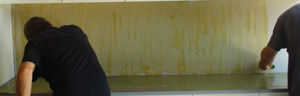 Cuando el adhesivo se extiende incluso como posible en la pared y el acero inoxidable es hora de poner el acero inoxidable en la pared (¿crees que va a ser en este paso ¡ pasemos...)