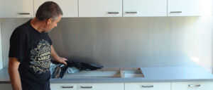 Momento de introducir la hoja de acero inoxidable en la pared de su cocina.