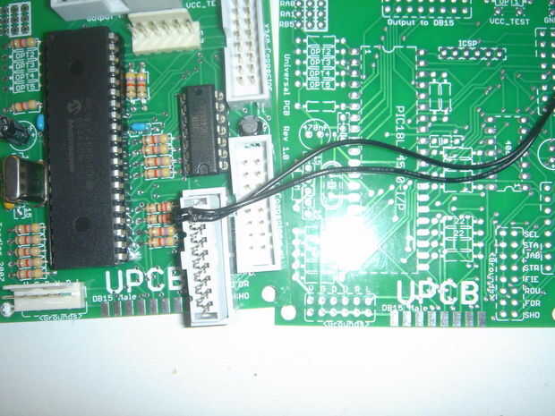 Si nos fijamos en la primera foto, verás el conector en la cabecera de botón. A la derecha es otro UPCB en blanco para que podamos ver las seda etiquetas seleccionadas. El botón superior es con la etiqueta 'SEL' para seleccionar. Ambos cables del botón de selección son de color negros en mi memoria, y aquí puedes ver donde he colocado en los dos dientes superiores. Uno abajo, 7 para ir. No importa cuál de los dos cables en cuál de los dos dientes, siempre y cuando hay uno en ambos de los dos primeros dientes.
