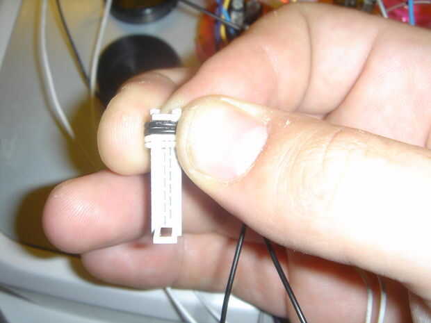 Estos cables para permanecer en el lugar, especialmente sin doblar los dientes, es muy difícil. El truco para hacer este trabajo bien hecho es que los cables en el orden correcto plana. Si son planos juntos, luego exprimir el conector en correctamente es un broche de presión. Tal vez algunos realmente fuerte cinta de doble cara haría el truco, pero yo no he probado. Lo que hice fue poner los cables en orden dentro del primer conector IDC, sin preocuparse por los dientes o cualquier otra cosa y fijación de la pieza de sujeción en su lugar. Esto dobló los dientes todos al infierno y en corto un par de cables y había despojado el aislamiento extremo al lado de una. Pero, puesto que estaban en orden y bien y recto, pude conectar un segundo conector IDC justo al lado. Puesto que los cables estaban justo al lado de cada uno, plana y en orden, yo simplemente había aplastado la pieza de sujeción hacia abajo sobre la pieza IDC como si se tratara de un cable de cinta. Las líneas de los cables y los dientes para arriba perfecto y dieron un perfecto conjunto de conexiones en ningún momento.