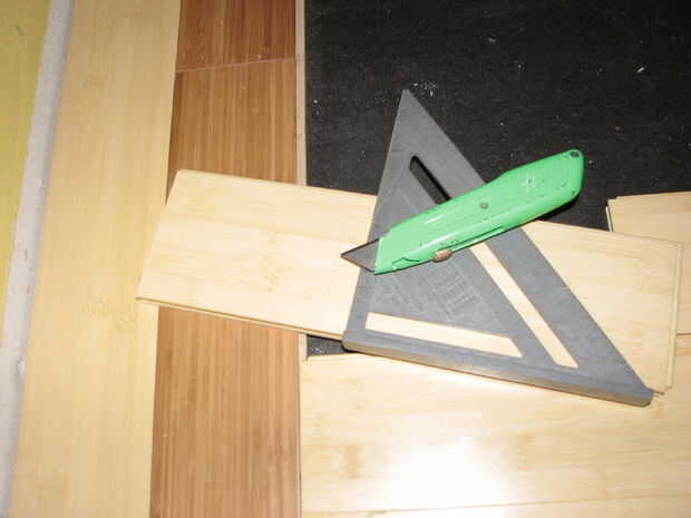 Colocar una ranura en el borde de corte debido al patrón en este piso que he tenido hacer un montón. Huele un poco como cuando bote bambú cortado... Sólo para tu información